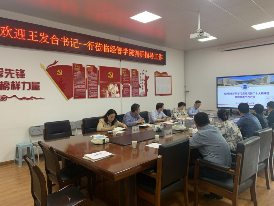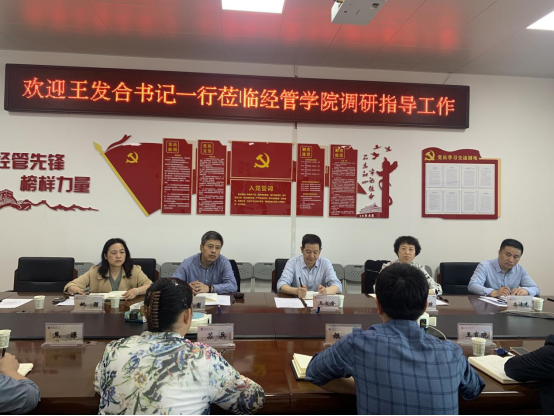 王发合对经管学院凝心聚力谋发展所取得的成绩予以肯定。他强调,全院上下要深入开展学习贯彻习近平新时代中国特色社会主义思想主题教育,提高政治站位,深刻认识开展主题教育的重大政治意义、重大理论意义、重大实践意义、重大历史意义,切实把思想和行动统一到中央决策部署和省委要求上来,扛起主体责任,将调查研究、解决问题贯穿始终,把主题教育谋划好、组织好、落实好。对于经管学院今后工作,他提出三点要求:一是要高度重视校园安全维稳工作,始终把安全工作放在首要位置,牢牢构筑校园安全防线,使安全管理工作更加精细化、规范化和科学化;二是要在学生就业工作方面强化对学生的服务与引导,加强就业形势和就业观念教育,积极为学生提供优质岗位信息,保障就业工作扎实有效推进;三是学院科研工作要坚持问题导向,集中优势资源,凝练各团队优势方向,强化特色,努力做到人无我有,人有我优。要制定调研交流计划,加强校企联合,学习经验、取长补短,实现同频共振、互利共赢,助推学院活力提升和高质量发展。