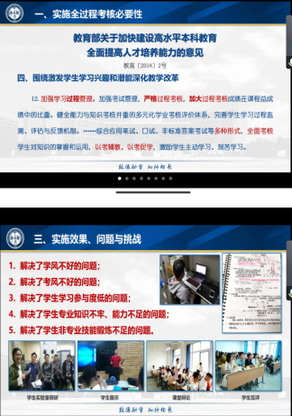 李炳副院长从实施全过程考核必要性,如何实施全过程考核以及实施效果、问题与挑战三个方面进行了交流分享。参会教师结合自己课程考核实施过程中遇到的问题进行了提问讨论。本次活动的开展,使参会教师清楚认识到了全过程考核评价的内涵和重要意义。