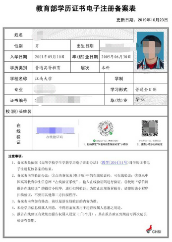 l 学历检验不通过的须上传教育部的电子注册备案表(2002年以后毕业的往届生)或学历认证报告(2002年以前毕业的往届生)或学籍在线验证报告(应届生),在境外获得学历证书的考生需提供教育部留学服务中心出具的认证报告照片。认证报告上的12位在线验证码或7位认证编号必须清晰完整。如下图: